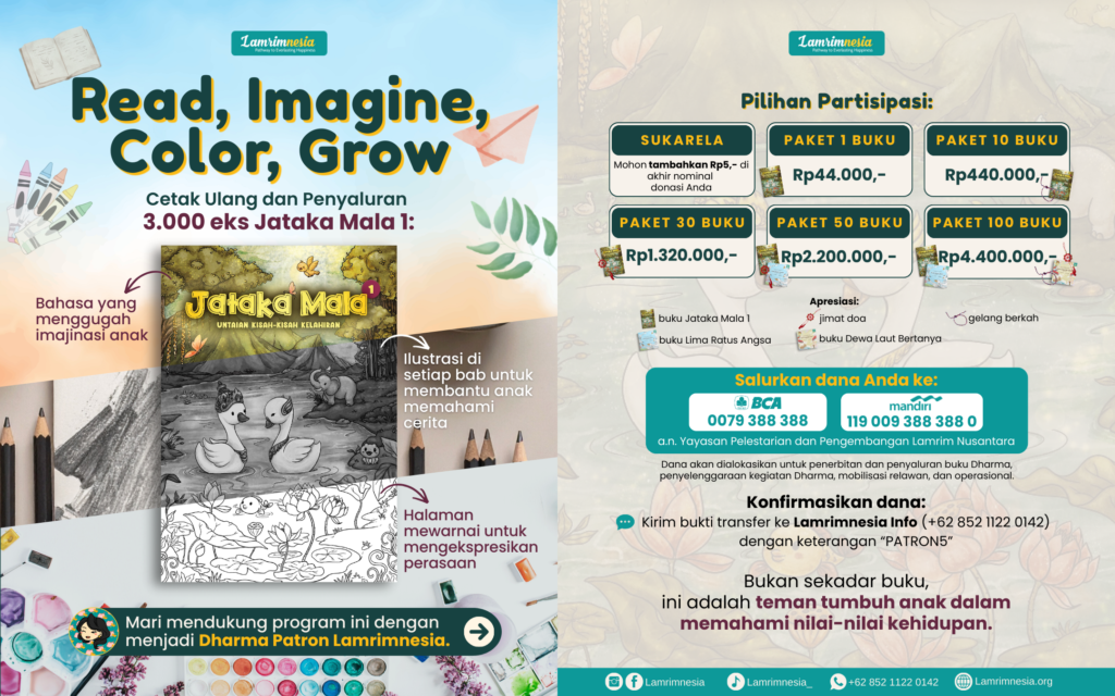Konfirmasikan ke Lamrimnesia Info (+62 852 1122 0142) dengan mengirimkan bukti transfer dengan keterangan “Patron5”
